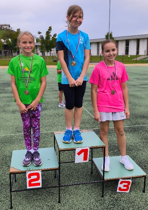 Medobčinski kros smo na Osnovni šoli Kajetana Koviča Poljčane izvedli v četrtek, 9. 10. 2025. Nastopili so učenci iz osnovnih šol občin Slovenska Bistrica, Makole, Oplotnica in Poljčane. Skupaj je tekmovalo 213 otrok, sodelovale so vse šole z našega medobčinskega območja. Dečki in deklice, letnik 2016, so tekli na 500 m, tek je bil netekmovalnega značaja, vsi nastopajoči so prejeli spominske medalje. Dečki in deklice od letnika 2015 do letnika 2011 pa so tekli na 1000 m za rezultate posamezno in ekipno. Ekipno točkovanje je za vsak letnik (razred) posebej, upoštevata se dve najboljši dekleti in dva najboljša fanta. Na koncu smo podelili še pokale za vseekipno točkovanje, kjer upoštevamo najboljših 8 rezultatov po uvrstitvah, ne glede na razred in spol. Medalje in pokale je prispeval Javni zavod za šport iz Slovenske Bistrice. Zelo smo veseli dobrih uvrstitev naših učenk in učencev ter naslova najboljše ekipe na krosu za našo šolo!