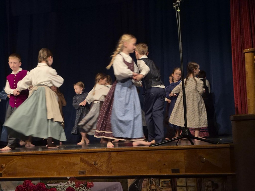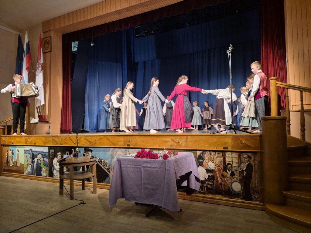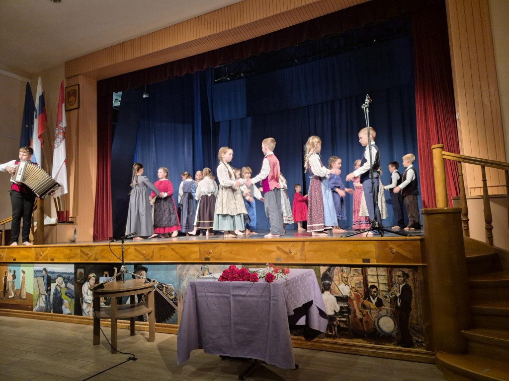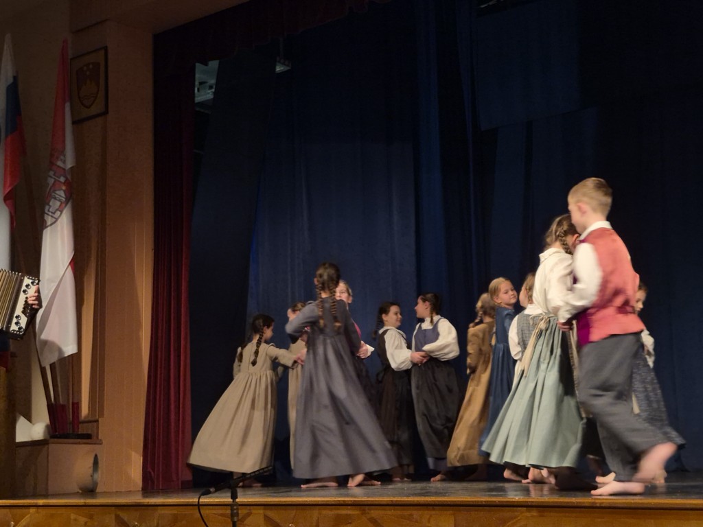 Učenci so lepo in usklajeno plesali ter prepevali. Na harmoniko jih je uspešno spremljal Gašper Mršič, učenec 7.a razreda.